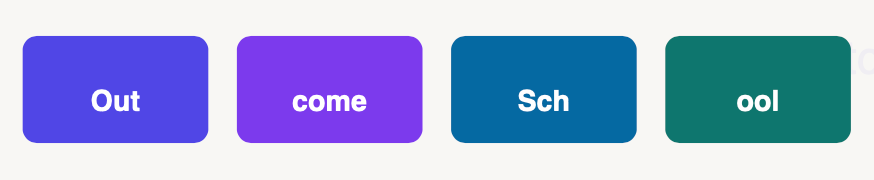 Out | come | Sch | ool → 4 tokens, not 2 words.